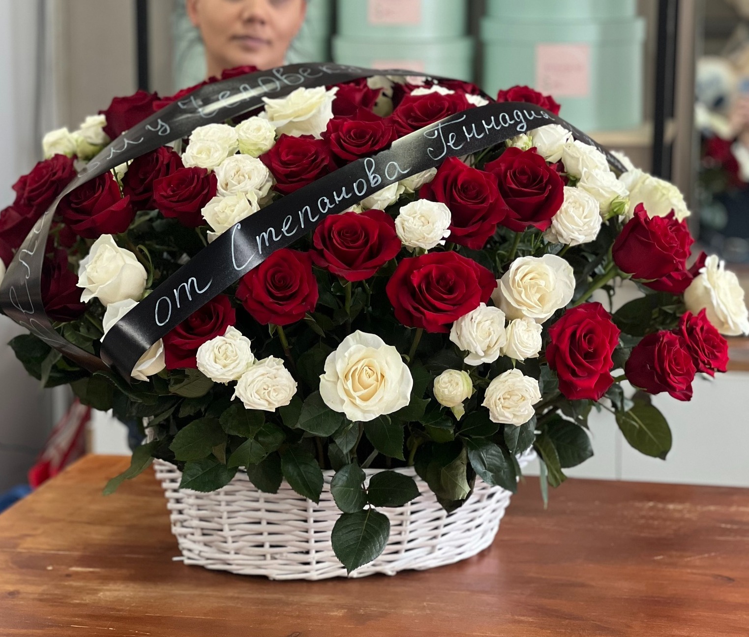კალათა ვარდებით